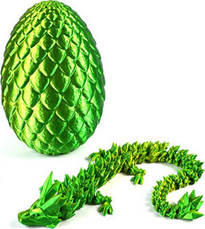 Meet the ultimate collectible: a stunning 3D printed green dragon nestled inside its own dragon egg! Standing at 5 inches tall, the intricately designed egg cradles a fierce dragon that stretches an impressive 11 inches long when unfolded. Perfect for display or imaginative play, this unique piece is sure to enchant dragon lovers of all ages.