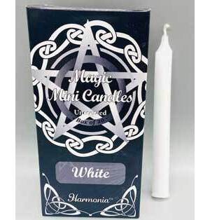 This is a box of 20 white 5" chime candles. The color of purity and peace, White Chime candles are great for invoking happiness, strength, and can be used to add to the potency of protection spells. 5" x 1/2