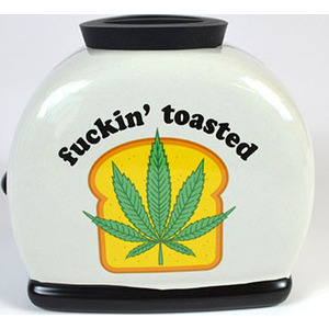 A toaster novelty jar that has a rubber seal around the bread slots. This humorous jar makes a great gift that functions as a storage container.