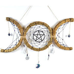 This enchanting triple moon wreath features a stunning pentagram at its center, making it a perfect addition to your mystical decor. Adorned with charming bells and beautiful amethyst and sodalite crystals, it brings a touch of magic and tranquility to any space. Whether you're a nature lover or a spiritual seeker, this wreath is sure to elevate your ambiance and inspire positive energy.