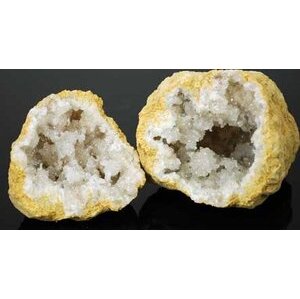 One of the beautiful wonders of nature, geodes are mineral formations that reveal wonderous arrays of crystals when cracked open. Theorized to form when bubbles form in volcanic stone and mineral deposits are left behind by water, they are nonetheless magical and mysterious in their egg-like appearance, displaying magnificent and varied arrays of crystals within an often less-than beautiful exterior. Here you will find one geode cracked in half, measuring approximately 4" in diameter though exact sizes and shapes will vary as these are a product of nature.