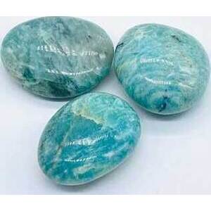 Larger Amazonite pieces polished and smooth with unique shapes and color offerings. Amazonite resonates with the Heart Chakra and carries a receptive energy. Some of its energetic offerings may help with physical ailments, emotional issues, chakra balancing, stress, traumas, and the aura. Sold by approximate weight only not by stone size or count. Seen in image are 1'-2' sizes however each batch will vary. From Madagascar