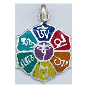 A colorful pendant depicting a unique artistic symbol of a Lotus. Allow the energy of purity, enlightenment and rebirth fill your energy when you wear this simple yet powerful pendant. Silver toned hardware 1 1/4